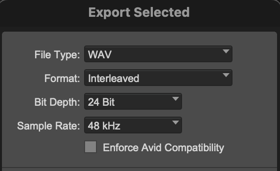 - All labeling of exported files should match those in the Pro Tools session and circle take script