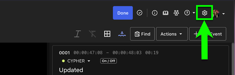 Originator Studio navigation relies heavily on keyboard shortcuts and settings. Select the Settings wheel at the top right of the page to reference and adjust shortcuts and general settings.