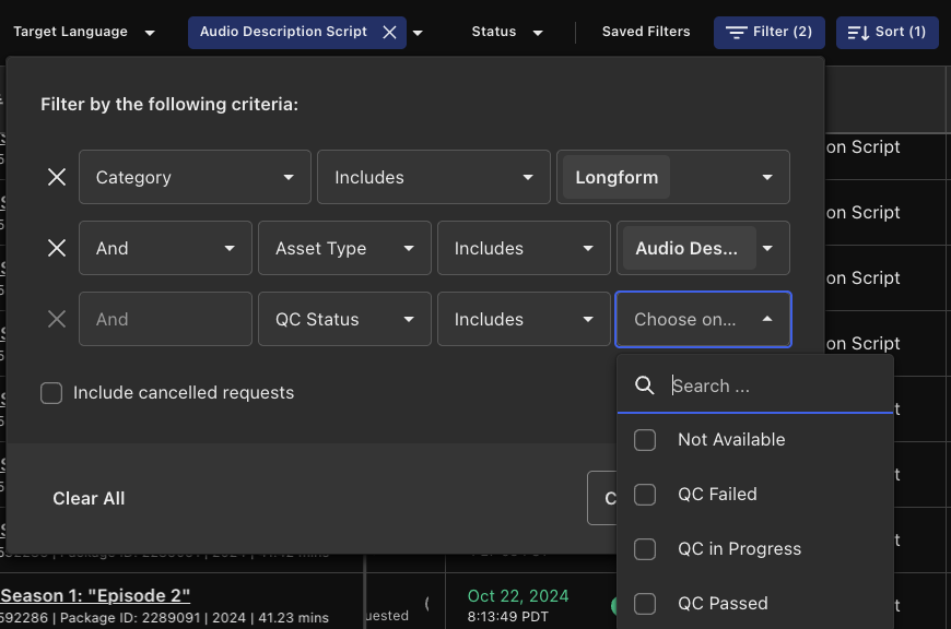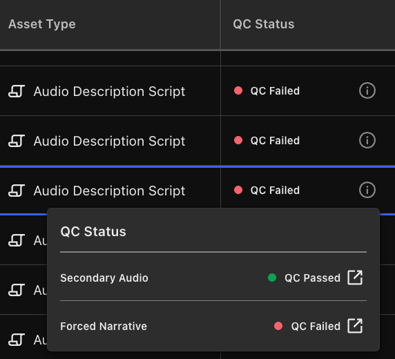 You can now view QC status details for Audio Description Scripts directly in the QC status column.