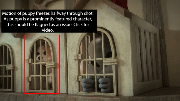 | 防止策 | 画像仕上げに進める前に最終ショットを確認します。露光レベル、モニタリングレベルを調整するか、最終ショット全体をフレーム単位でゆっくりと進めることで、アニメーションエラーを見つけられる場合があります。 |